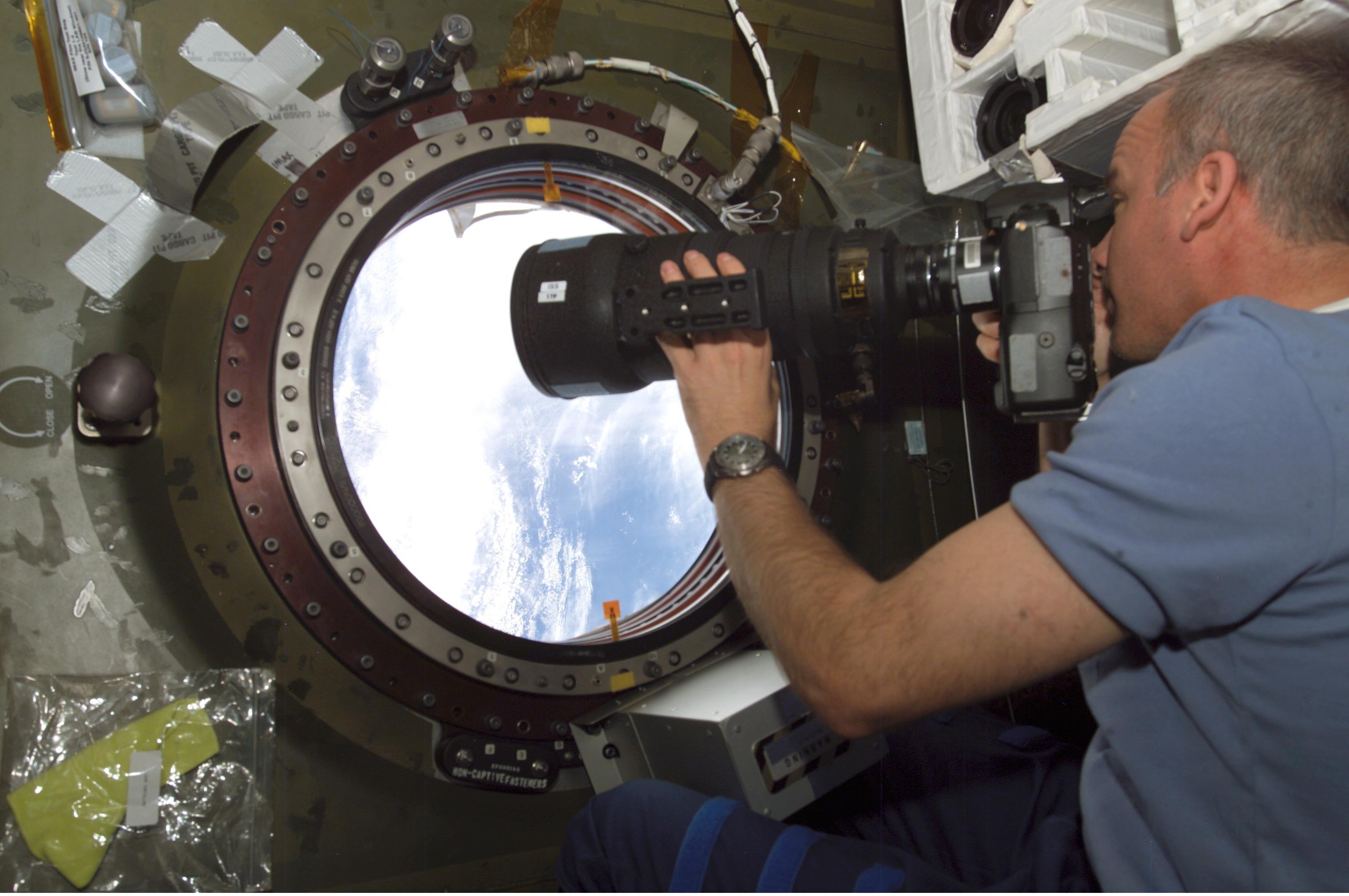 ISS-13 Jeffrey Williams at the U.S. Laboratory Science Window on the ISS.jpg