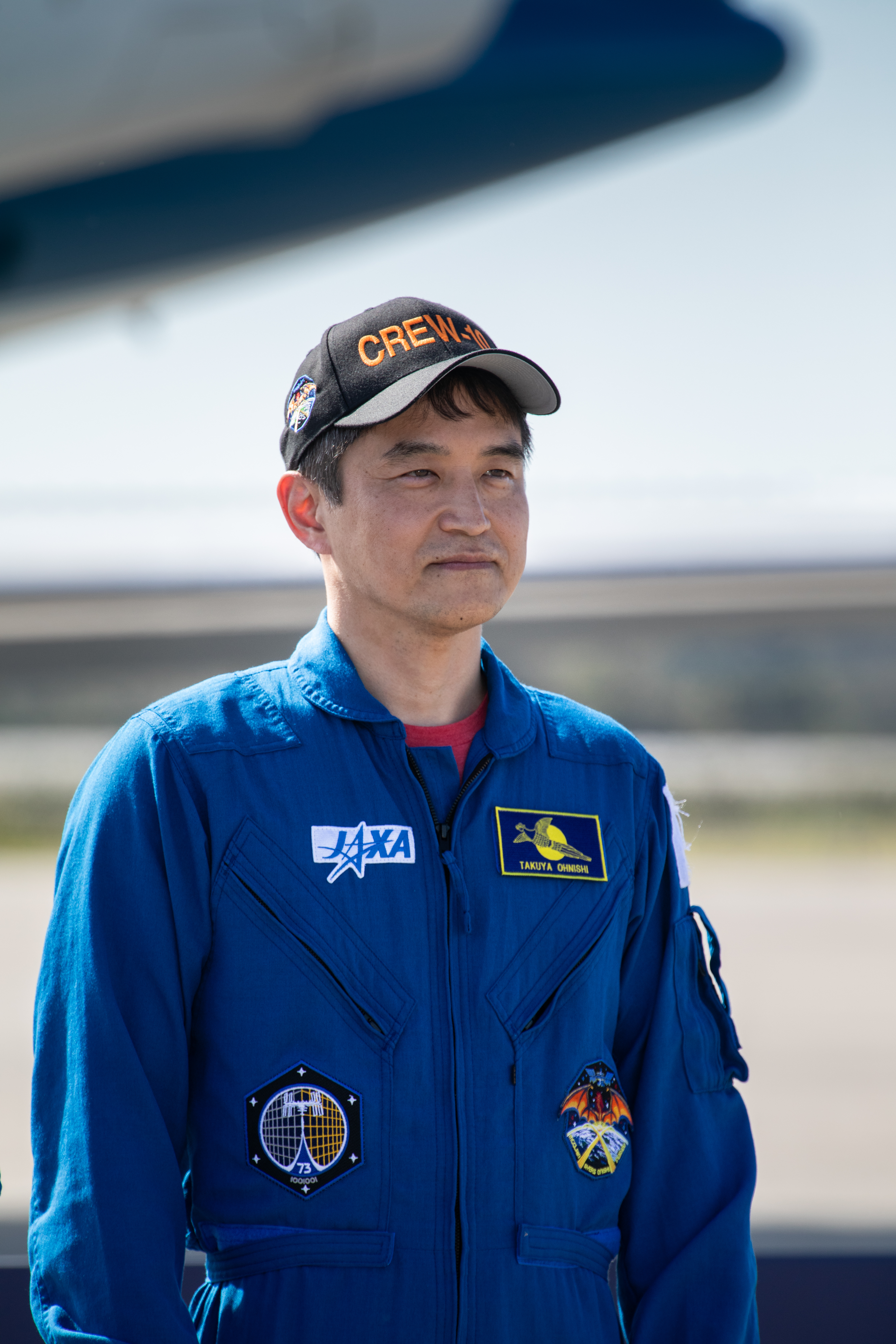 English: JAXA (Japan Aerospace Exploration Agency) astronaut Takuya Onishi participates in a news media event during crew arrival for NASA’s SpaceX Crew-10 mission at the Launch and Landing Facility at the agency’s Kennedy Space Center in Florida on Friday, March 7, 2025. NASA astronauts Anne McClain and Nichole Ayers, along with Onishi and Roscosmos cosmonaut Kirill Peskov will launch to the International Space Station aboard SpaceX’s Dragon spacecraft and Falcon 9 rocket. Launch is targeted for 7:48 p.m. EDT on Wednesday, March 12, 2025, from Launch Complex 39A at NASA Kennedy. Crew-10 is the 10th crew rotation mission with SpaceX to the space station as part of the agency’s Commercial Crew Program |
