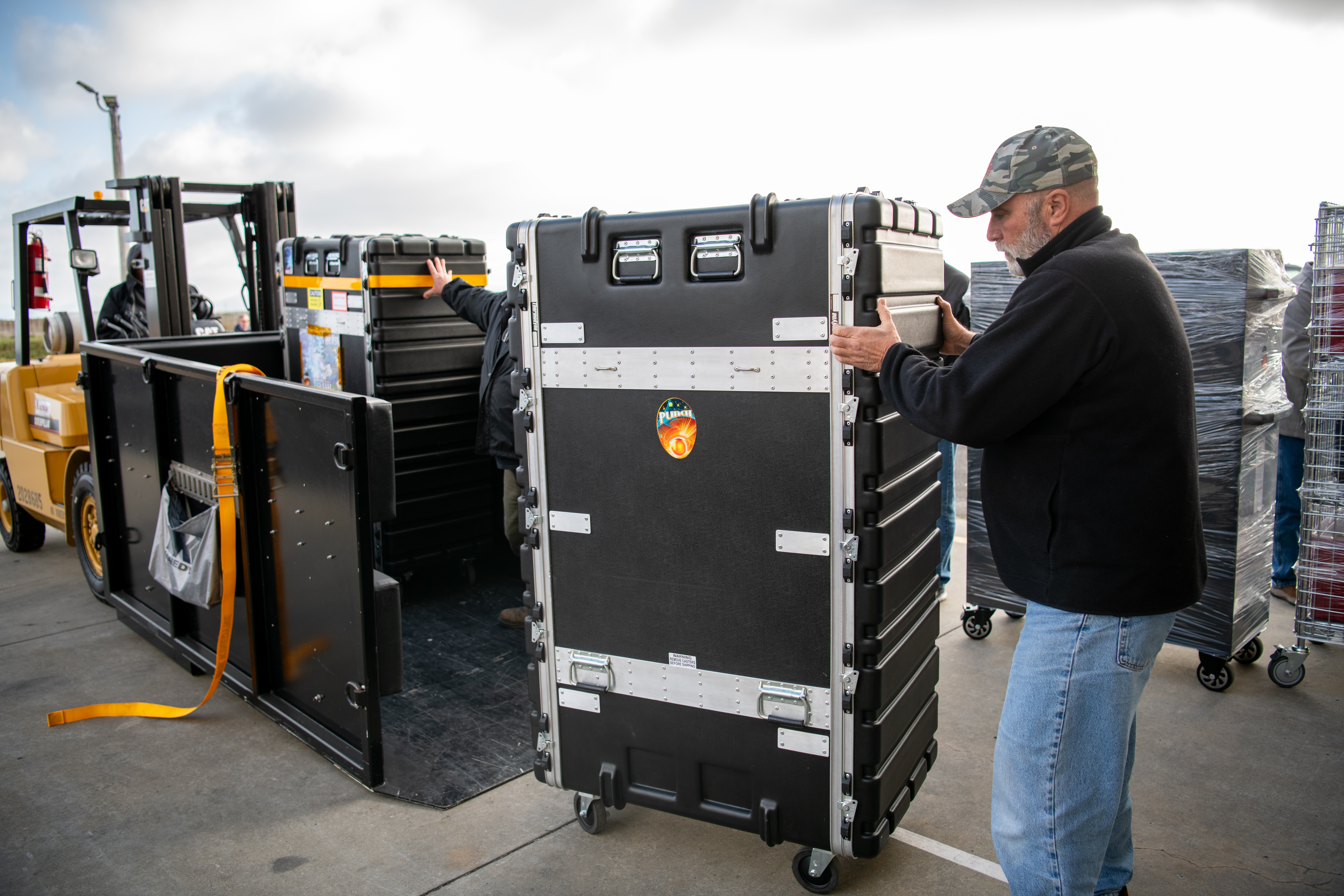 English: Teams at Vandenberg Space Force Base in California offload several shipping containers protecting NASA’s PUNCH (Polarimeter to Unify the Corona and Heliosphere) satellites on Saturday, Jan. 18, 2025. PUNCH will make 3D observations of the Sun’s corona to learn how the mass and energy becomes solar wind. PUNCH, along with NASA’s SPHEREx (Spectro-Photometer for the History of the Universe, Epoch of Reionization and Ices Explorer), a space telescope, will launch aboard a SpaceX Falcon 9 rocket in late February 2025. |