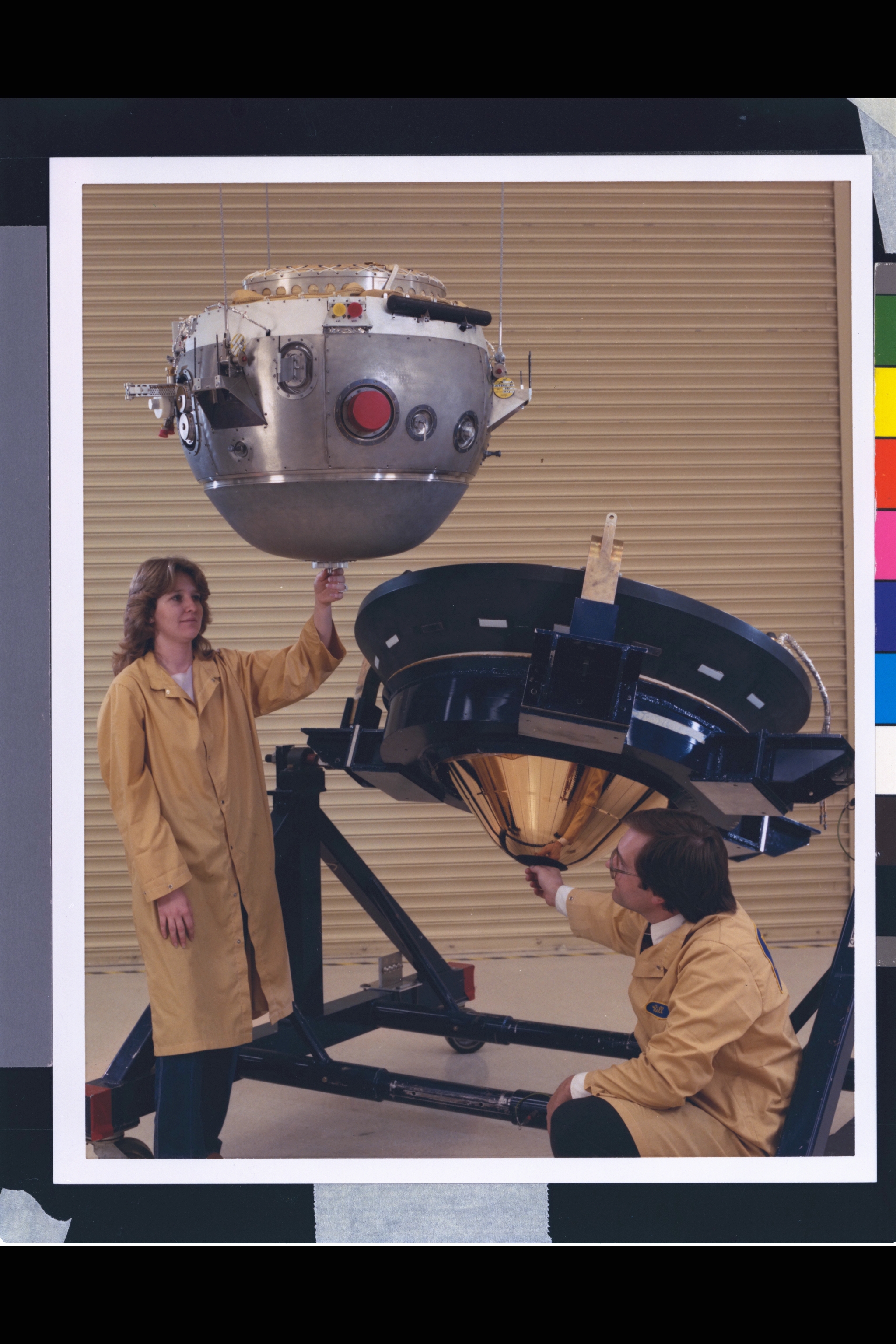Galileo Jupiter Atmospheric Probe in a spacecraft processing room (AC84-0228-3).jpg